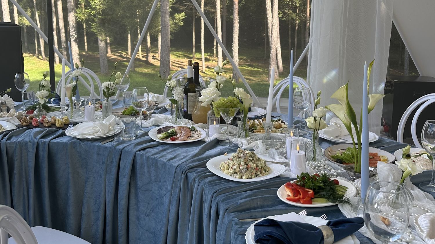 Расположенный в живописном месте, где можно наслаждаться невероятными пейзажами, зал окружен многовековыми соснами. Здесь можно не только провести банкет и позволить гостям насладиться пребыванием на свежем воздухе, но и организовать уникальную фотосессию для молодоженов или для приглашенных.